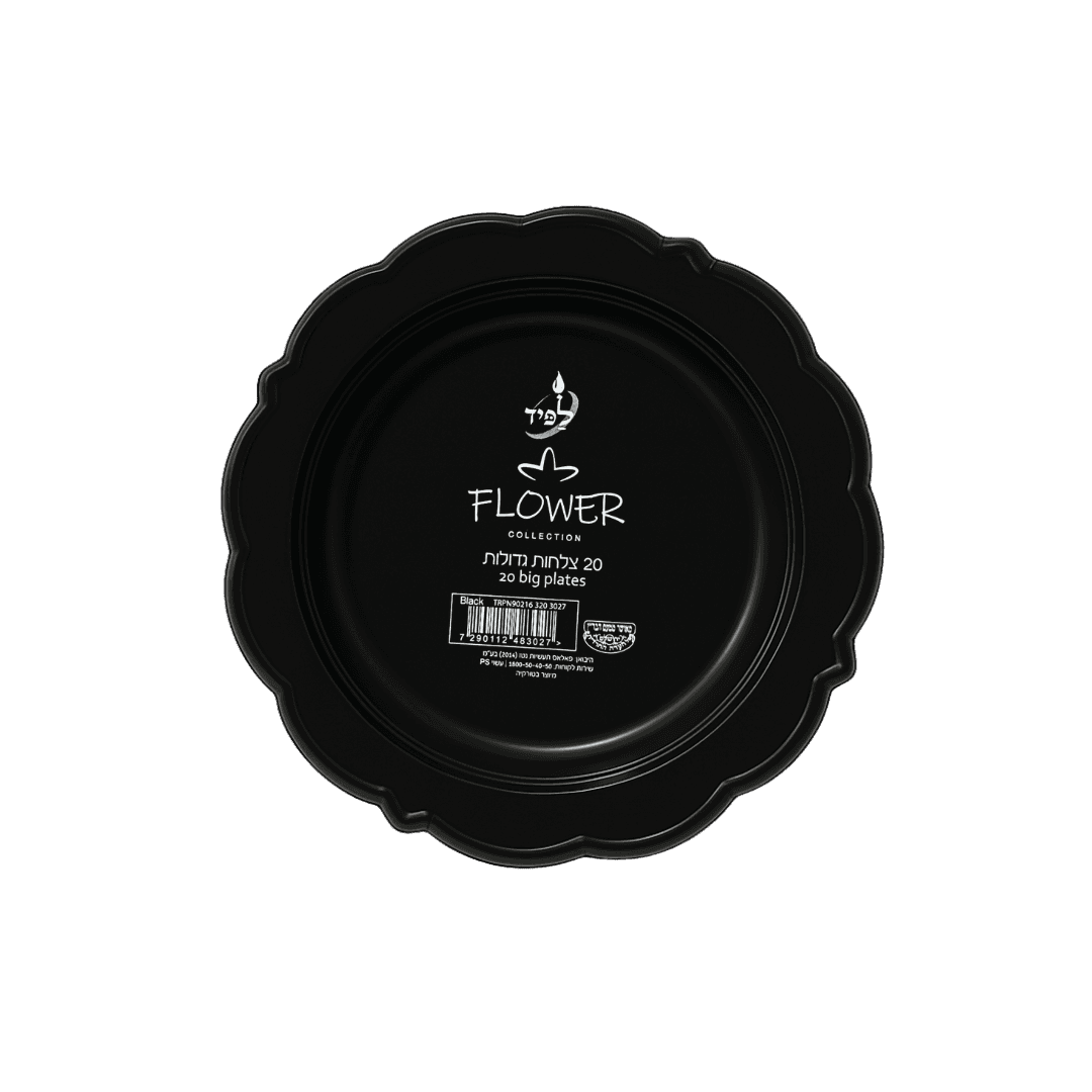 צלחות מהודרות פרח שחור ארוז 20 יח׳ (10״)